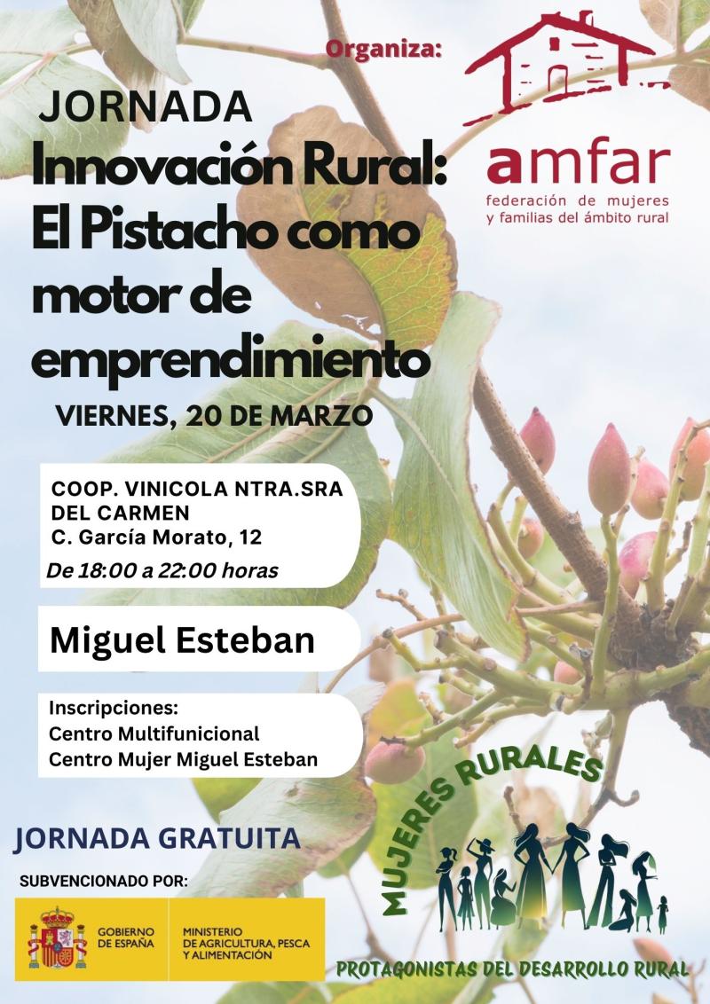Dans le cadre de ce programme, l'AMFAR organise l'événement : « INNOVATION RURALE : LA PISTACHE COMME MOTEUR DE L'ENTREPRENEURIAT », qui aura lieu le vendredi 20 mars 2026 à la coopérative vinicole Nuestra Señora del Carmen à Miguel Esteban, Tolède.