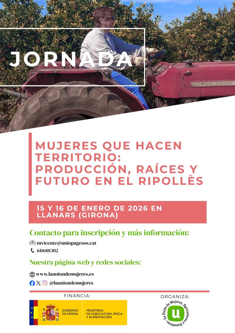 L'Union des femmes agricultrices et éleveuses organise une journée GRATUITE sur le thème « LES FEMMES QUI FAÇONNENT LE TERRITOIRE : PRODUCTION, RACINES et AVENIR », qui se tiendra les 15 et 16 janvier 2026 de 9h30 à 18h30 dans la ville de Llanars (Gérone).
